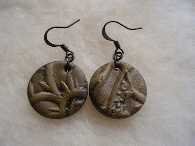 Töökäigust siis niipalju, et ma võtsin savi rullisin lahti vajutasin nööpide, sõrmuste, vaaside, puust elevantide ja kes teab millega mustri peale. Siis lõikasin sealt klaasiga ümmarguse tüki ja panin ahju. Siis lihvisin teravaks jäänud servad ära. Kandsin ripatsile akrüülvärvi (osadele ka mingit ema ateljeest leitud kangemat värvi- vask ja kuld), lasin vaid hetke kuivada ja siis pühkisin paberiga pealt värvi vähemaks. Lasin pool päeva kuivada ja lakkisin nad siis üle. Panin neile veidi helmeid kaunistuseks ja nahkpaela taha ja oligi valmis.